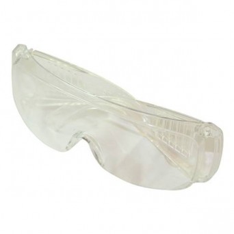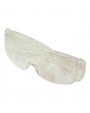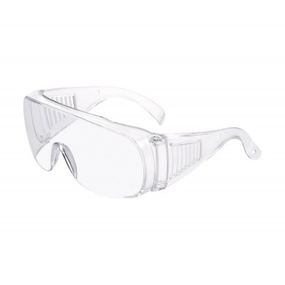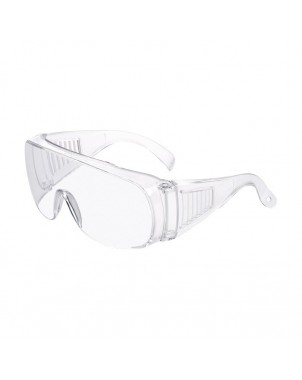 Occhiali di protezione in policarbonato, con lente e corpo trasparente.