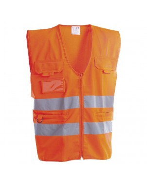 Gilet alta visibilità, con tasche e porta-badge. Taglia comoda.