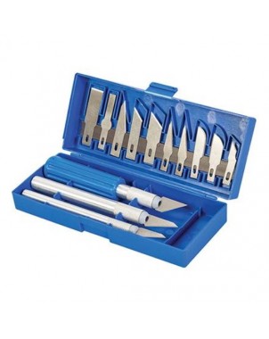 Dotato di 3 manici e 13 lame intercambiabili di varie forme e dimensioni.